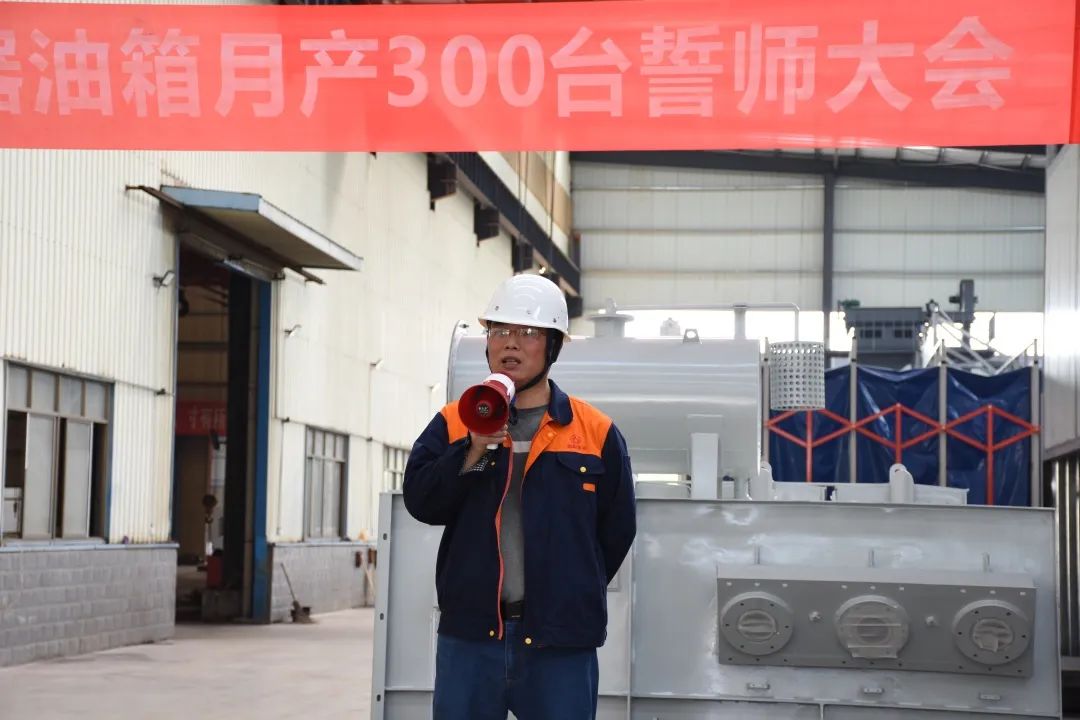 今天的宣誓在我們每個(gè)人的心中種下一個(gè)火種,將我們?nèi)w朝陽(yáng)人團(tuán)結(jié)一心、齊心協(xié)力、精益求精,不斷創(chuàng)新,不斷突破,服務(wù)好客戶,提升好自身。以做好明陽(yáng)電器月供300臺(tái)變壓器油箱為起點(diǎn),攻艱克難,持續(xù)追求卓越,不斷超越自我,做出一個(gè)客戶滿意、員工幸福、茁壯成長(zhǎng)般“驕陽(yáng)似火”的朝陽(yáng)集團(tuán)。