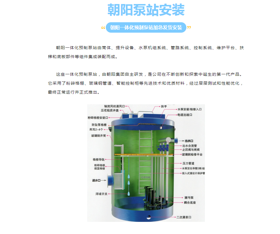 朝陽集團應(yīng)工業(yè)園客戶的具體需求,按時按需完成并發(fā)貨。定制的一體化預(yù)制泵站,在設(shè)計上充分考慮了客戶的實際使用情況,經(jīng)過嚴格測試和檢驗,確保其性能穩(wěn)定可靠,壽命長久。